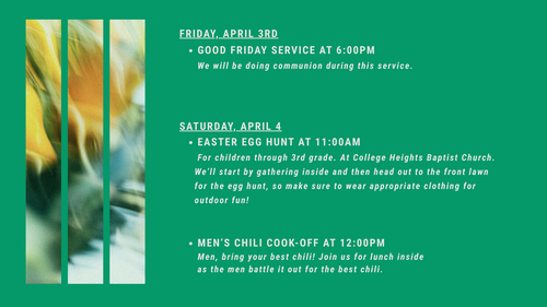 College Heights Baptist Church exists to share the Truth of God's Word.